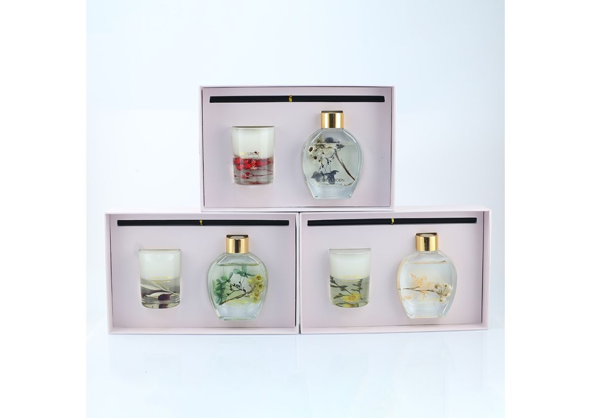 Custom Preserved Flower Gel Candle Reed Diffuser Gift Set - 106A